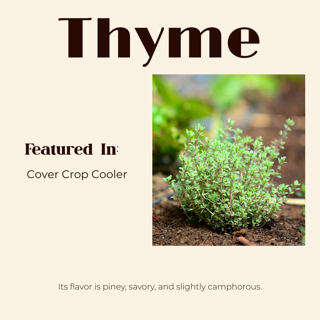For Earth Month, and as a perfect reward after a day spent tending to the new spring plantings, look for the Cover Crop Cooler in our newsletter. This refreshing beverage features thyme in a honey syrup offering a crisp, herbaceous, and incredibly rejuvenating flavor profile that perfectly captures the essence of a spring garden.