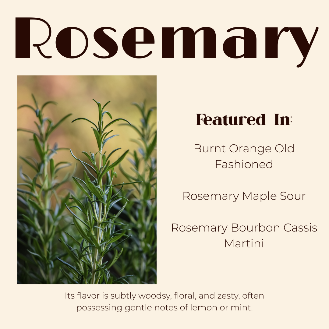 This Friday, you can taste the depth of this resilient herb in our Burnt Orange Old Fashioned. If you want to bring out more rosemary flavor in the cocktail, lightly torch before serving, releasing its oils and adding a smoky, intensely aromatic layer allowing it to complement the caramelized sweetness of the burnt orange and rich whiskey base.