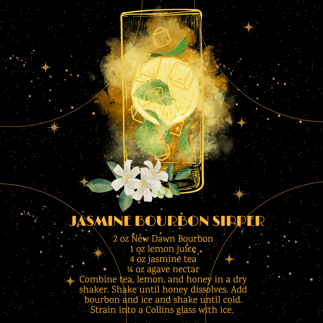 This particular cocktail is chosen because it perfectly captures the Piscean spirit of spring, which in many ways mirrors the sign’s sense of renewal, beauty, and transient magic. Spring is, in my opinion, the most magical time of year here in New Orleans. The city itself transforms into an almost mythical realm, with beautiful, star-white Jasmine blooms dripping like constellations from every wrought-iron balcony, stairwell, and building. The heady, intoxicating scent of the Jasmine, a flower often associated with love, purity, and spiritual awakening, is powerfully evocative, instantly conjuring every romantic and dynamic fantasy you’ve ever held of this historic and vibrant city. The Sipper itself is a delicate balance: the warmth and depth of New Dawn’s 6-year old bourbon anchors the drink (representing Pisces’ need for grounding), while the floral, airy essence of the jasmine (representing their dreamlike nature) lifts it, resulting in a cocktail that is both complex and utterly enchanting—a true libation for the soul.