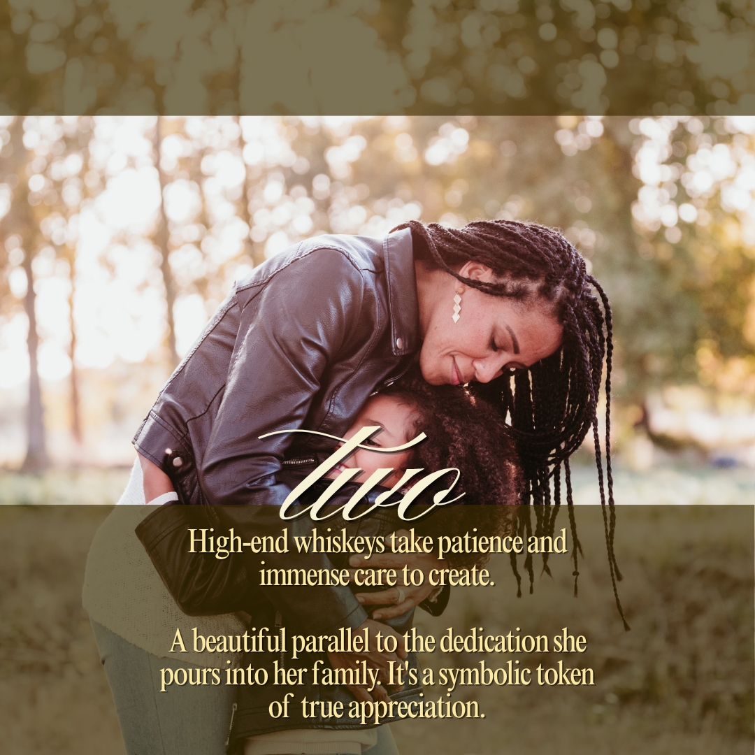 High-end whiskeys are artisanal. They take patience, time, and immense care to create. Connecting the patience and dedication required to age that spirit speaks directly to the countless hours of patience and dedication moms pours into their family. Whiskey is more than just a beverage, its a symbolic token of appreciation.